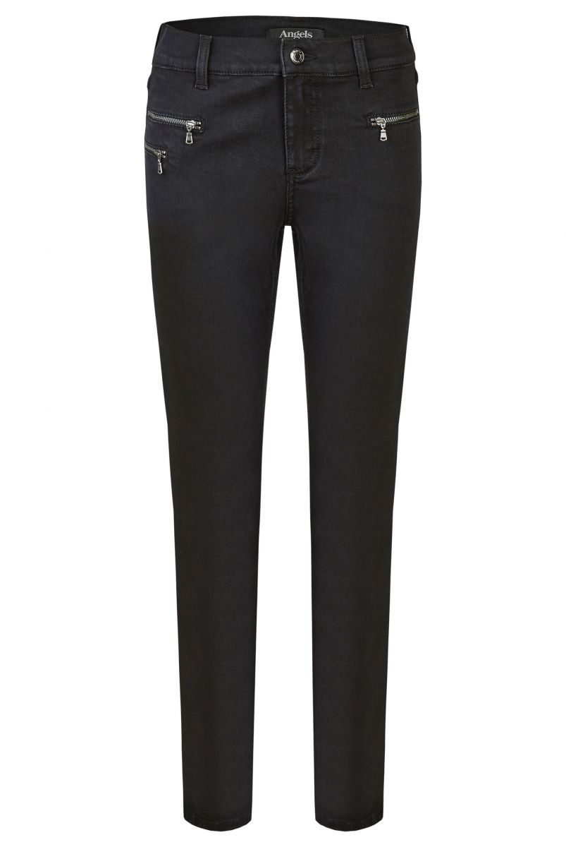 Een broek van Angels in de kleur zwart en donkerblauw verkrijgbaar. Materiaal:92%CO6%PES2%EL