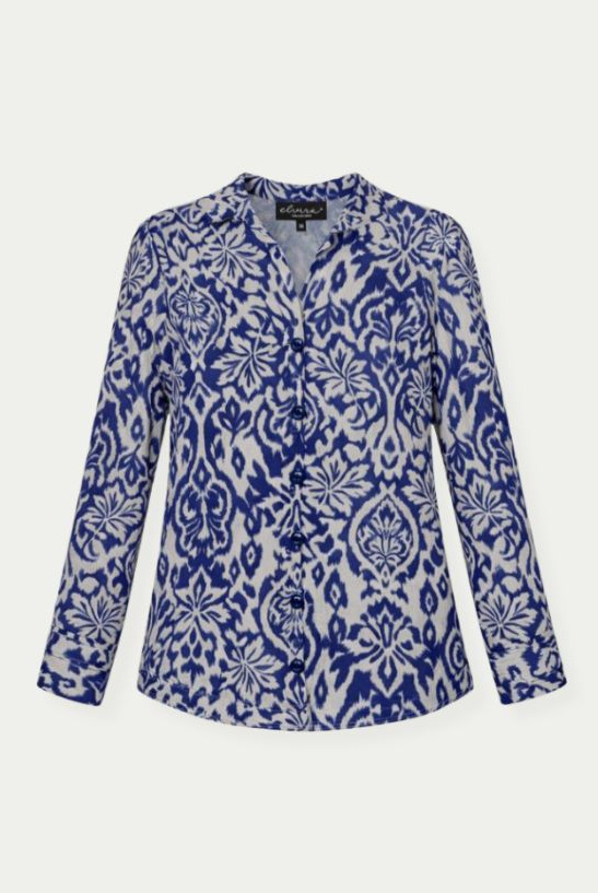 Blouse van Elvira in de kleur blauw verkrijgbaar. Materiaal:85% viscose, 15% nylon