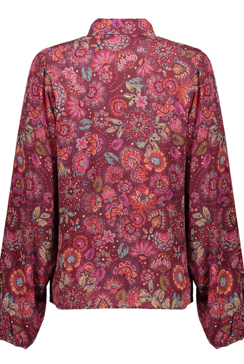 Geisha dames blouse met sierlijke gekleurde print