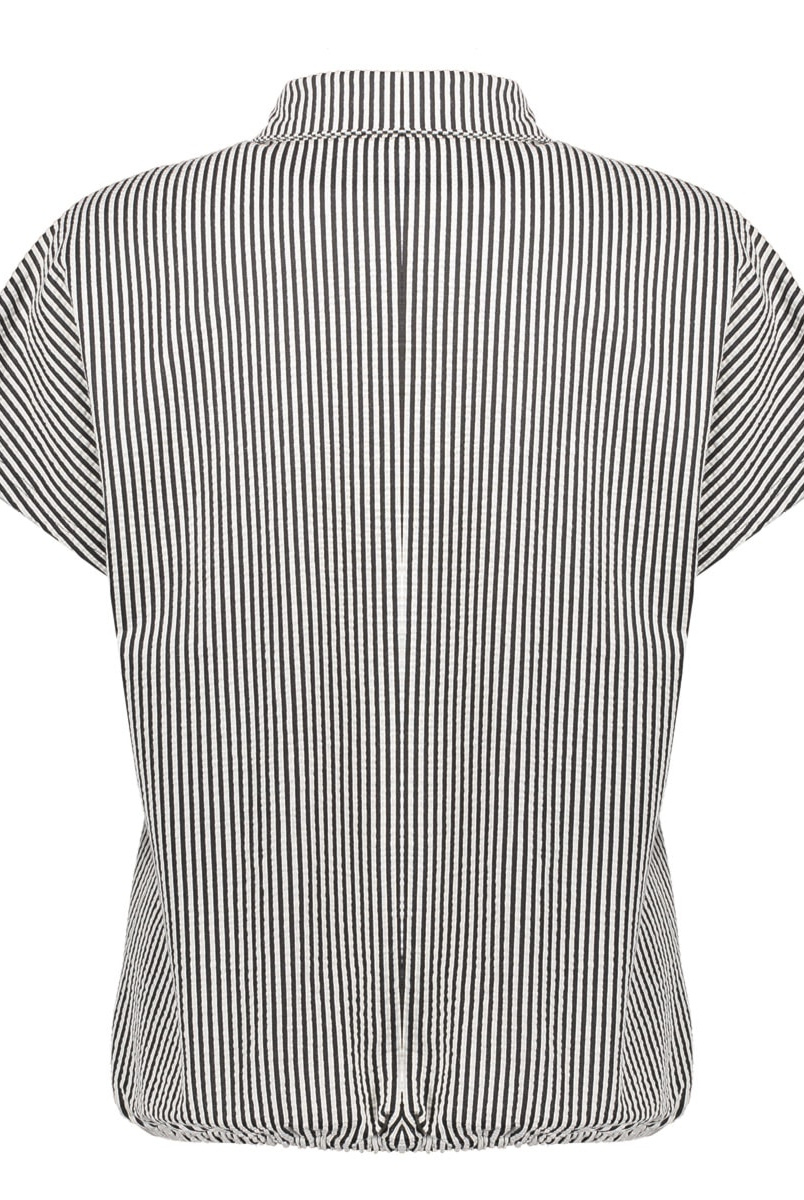 Deze blouse uit onze S26-1 collectie is een moderne klassieker met een speelse twist. De verticale strepen en klassieke kraag zorgen voor een klassieke touch terwijl de korte mouwen en elastische zoom zorgen voor een luchtige, comfortabele fit. Volledig doorknoopbaar en perfect als co-ord set met de bijpassende broek.