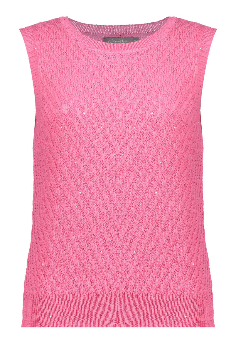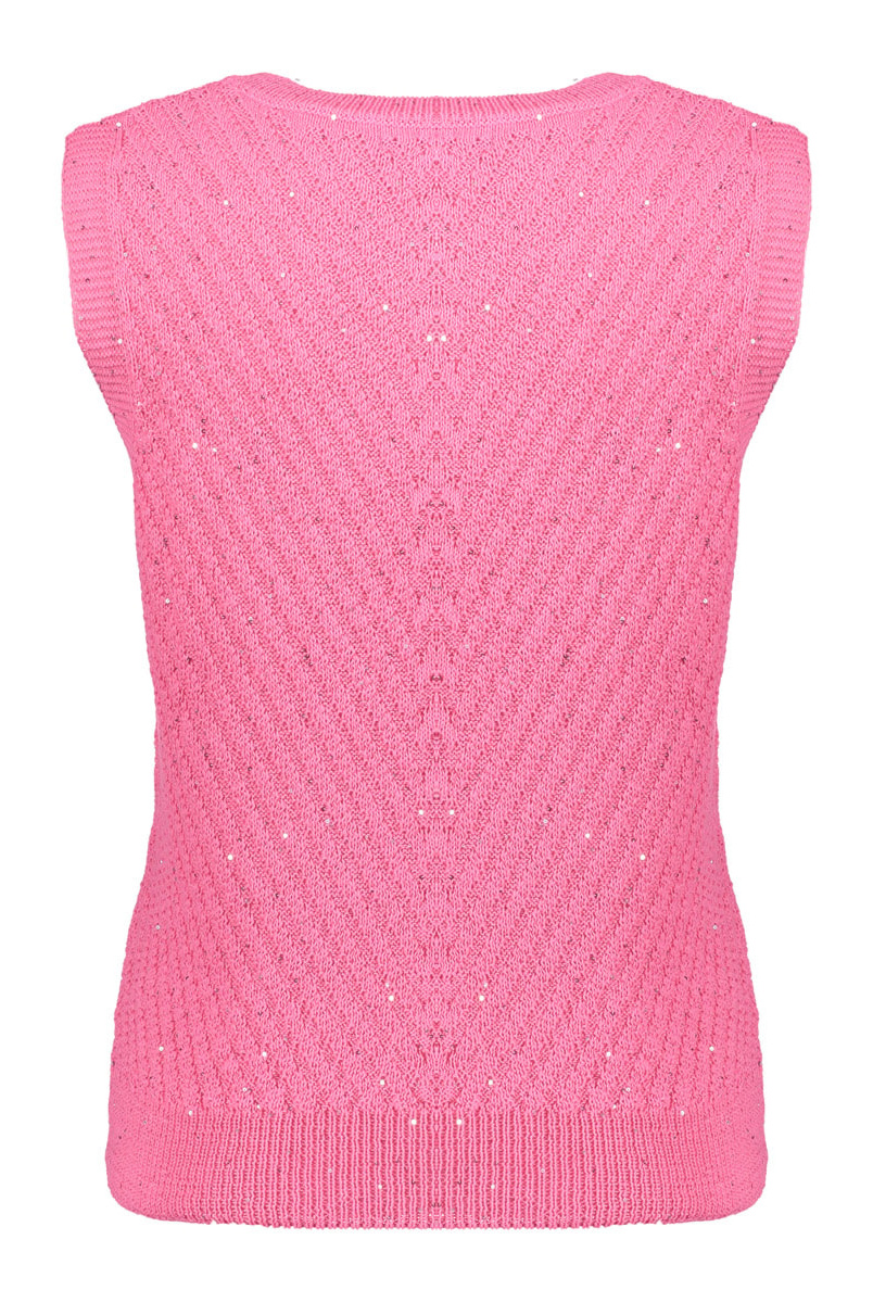 Deze spencer is onderdeel uit onze S26-1 collecite. Deze fijngebreide spencer heeft een rechte, aangesloten pasvorm. Het ingebreide V-patroon geeft structuur aan het ontwerp, terwijl de subtiele pailletten zorgen voor een zachte sparkle die het geheel net dat beetje extra geeft.