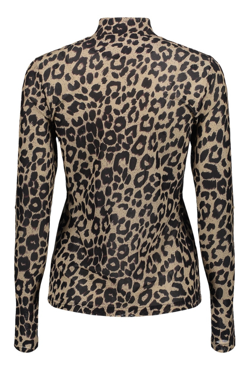 Geisha dames mesh top met leopard print Deze top is een onderdeel van onze W25-1 collectie. • Fit: Aangesloten pasvorm • Kraag: Turtleneck • Mouwen: Lange mouwen • Print: Leopard print • Details: Valt op de heup Materiaal:92% nylon / 8% elasthane