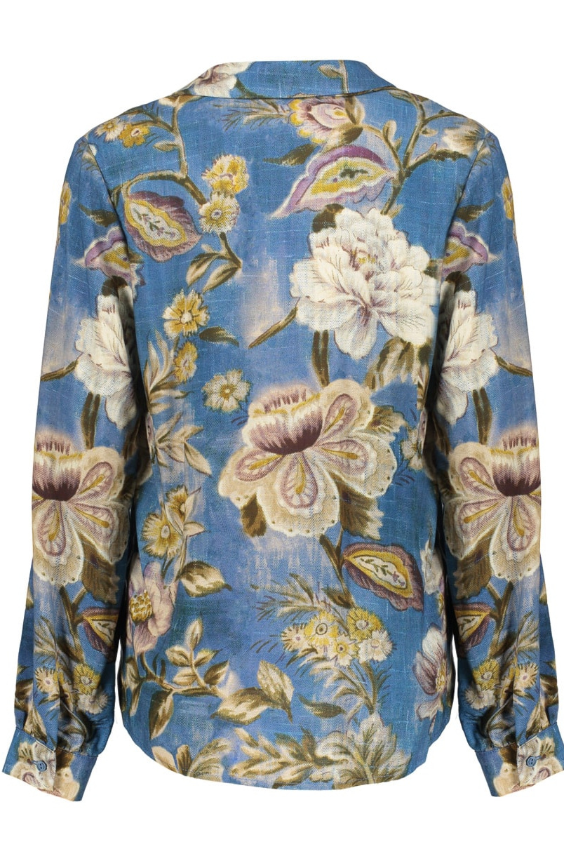Geisha dames blouse met bloemendessin in blauwe tinten