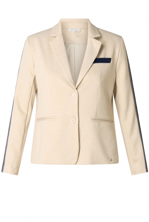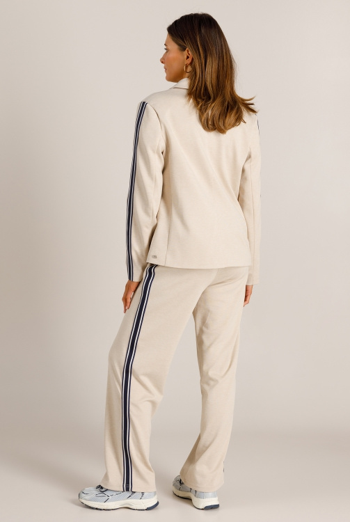 Een blazer met karakter! De sand melange tint krijgt een frisse upgrade door de contrasterende streep langs de mouwen. Dankzij de lichte voering draagt hij heerlijk soepel. Combineer met de bijpassende broek voor een eigentijdse, effortless co-ord set.