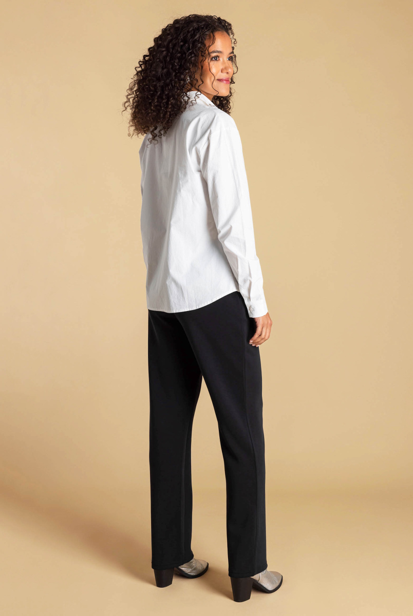 Simpel aan de voorkant, feest bovenaan. Deze katoenen blouse is elegant in al zijn eenvoud, met als eyecatcher een kraag vol parels. Een verfijnd detail dat je outfit moeiteloos feestelijk maakt, zonder dat je hoeft te overdrijven.