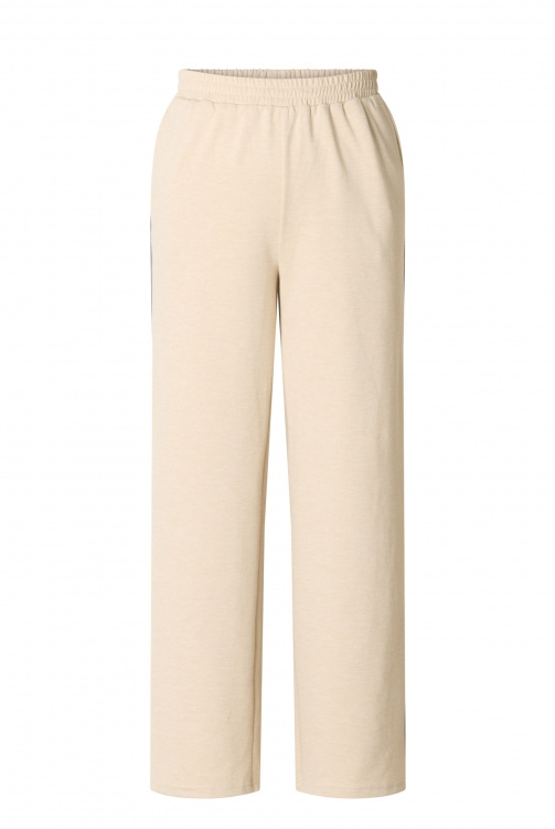 Comfort meets style! Deze sand melange loungebroek voelt zacht aan dankzij de soepele jersey en heeft een sportieve streep langs de zijnaad. Met elastische taille en steekzakken voor extra gemak. Perfect voor relaxte dagen. Combineer de broek met de bijpassende blazer voor een complete, comfortabele set.