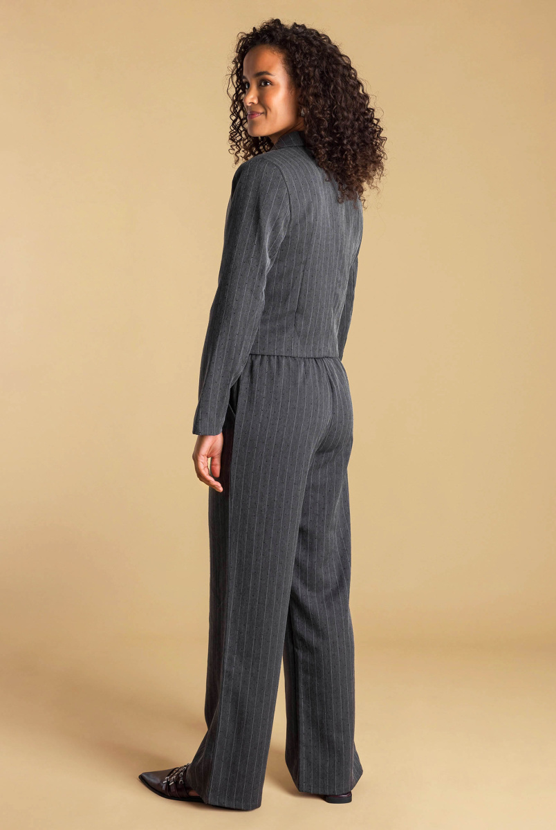 Een cropped blazer zoals deze is ideaal om je silhouet te accentueren. De krijtstrepen in combinatie met subtiele glitterdetails zorgen voor een vrouwelijke én krachtige uitstraling. Combineer met de matchende broek voor een moderne co-ord look die overal werkt.