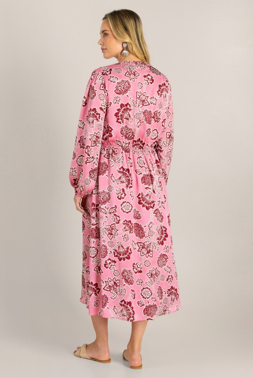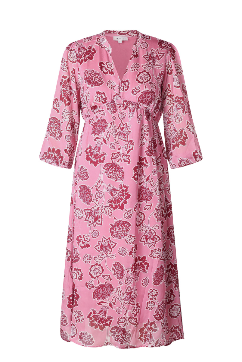 Vrouwelijk, vloeiend en vol kleur. Deze lange jurk combineert een elegante bloemenprint met een zachte satijnlook. De gevoerde binnenkant zorgt voor draagcomfort, terwijl de elastische manchetten en V-hals het silhouet mooi laten uitkomen.