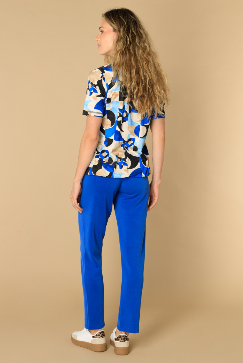 Een top met karakter. De soepele viscose-elastane jersey valt losjes om het lichaam, met een openvallende hals en een elastische onderkant voor een blousend effect. De abstracte print geeft elke outfit meteen een creatieve upgrade.
