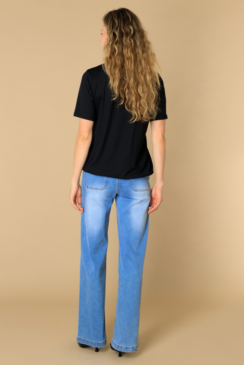 Clean en krachtig. Top Esti voelt zacht aan, valt soepel door de jersey kwaliteit en krijgt extra vorm door het elastiek aan de onderkant. De moderne halslijn maakt haar tijdloos én stijlvol. Materiaal:96% Viscose, 4% Elastane