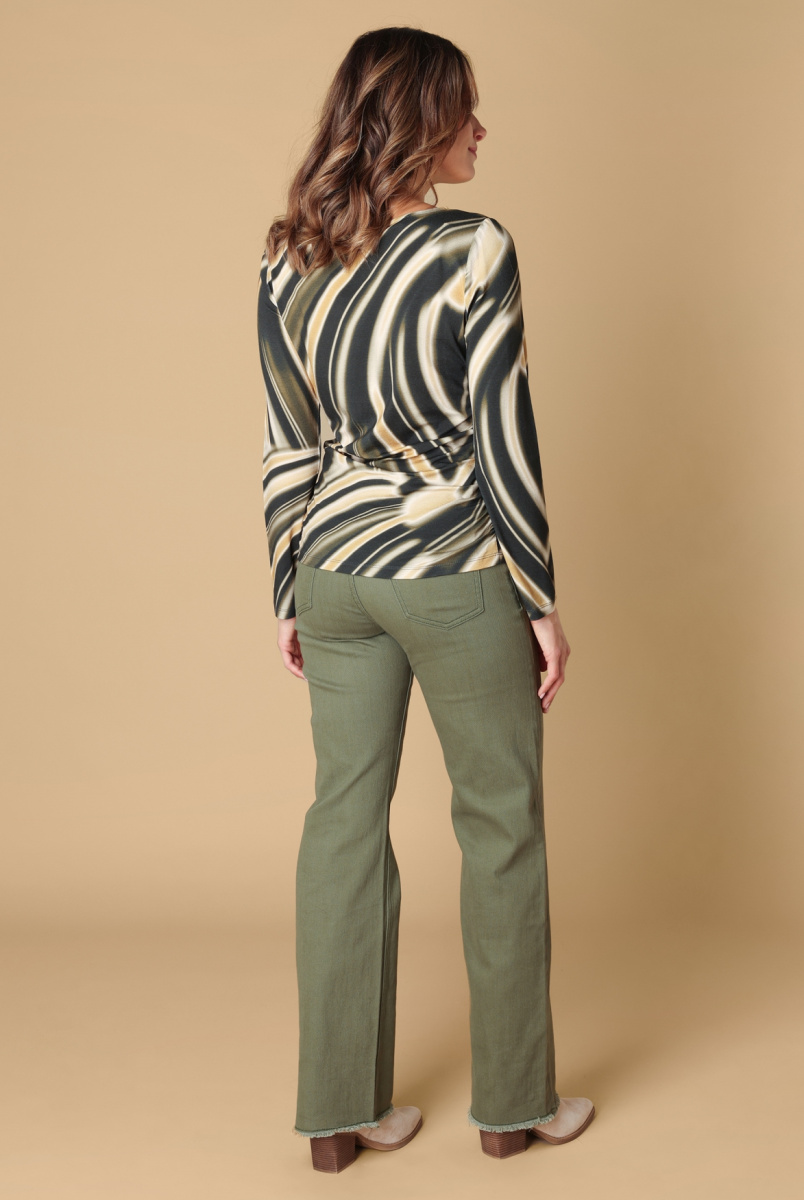 Top Savana is gemaakt voor beweging. De zachte stretchstof en de plooitjes op de zijnaad zorgen voor een flatterende fit, terwijl de boothals en driekwart mouwen het geheel een elegante twist geven. De retroprint doet de rest.