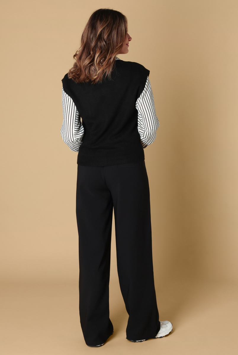 Vestje Stella geeft je look in één klap structuur. De chunky knopen, zachte knit en minimalistische snit maken haar perfect voor gelaagde outfits. Combineer met een gestreepte blouse of een basic tee—alles werkt met deze must-have .