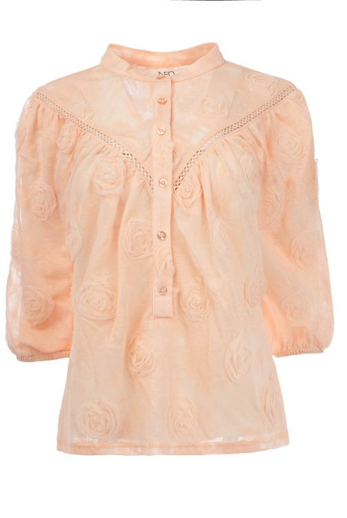 Blouse van NED in de kleur ecru en zalm rose verkrijgbaar. Materiaal:100% Polyester (PE/PL)