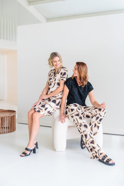 Broek van NED in de kleur mocha verkrijgbaar. Materiaal:98% Viscose (VI), 2% Elastane (EA, EL)