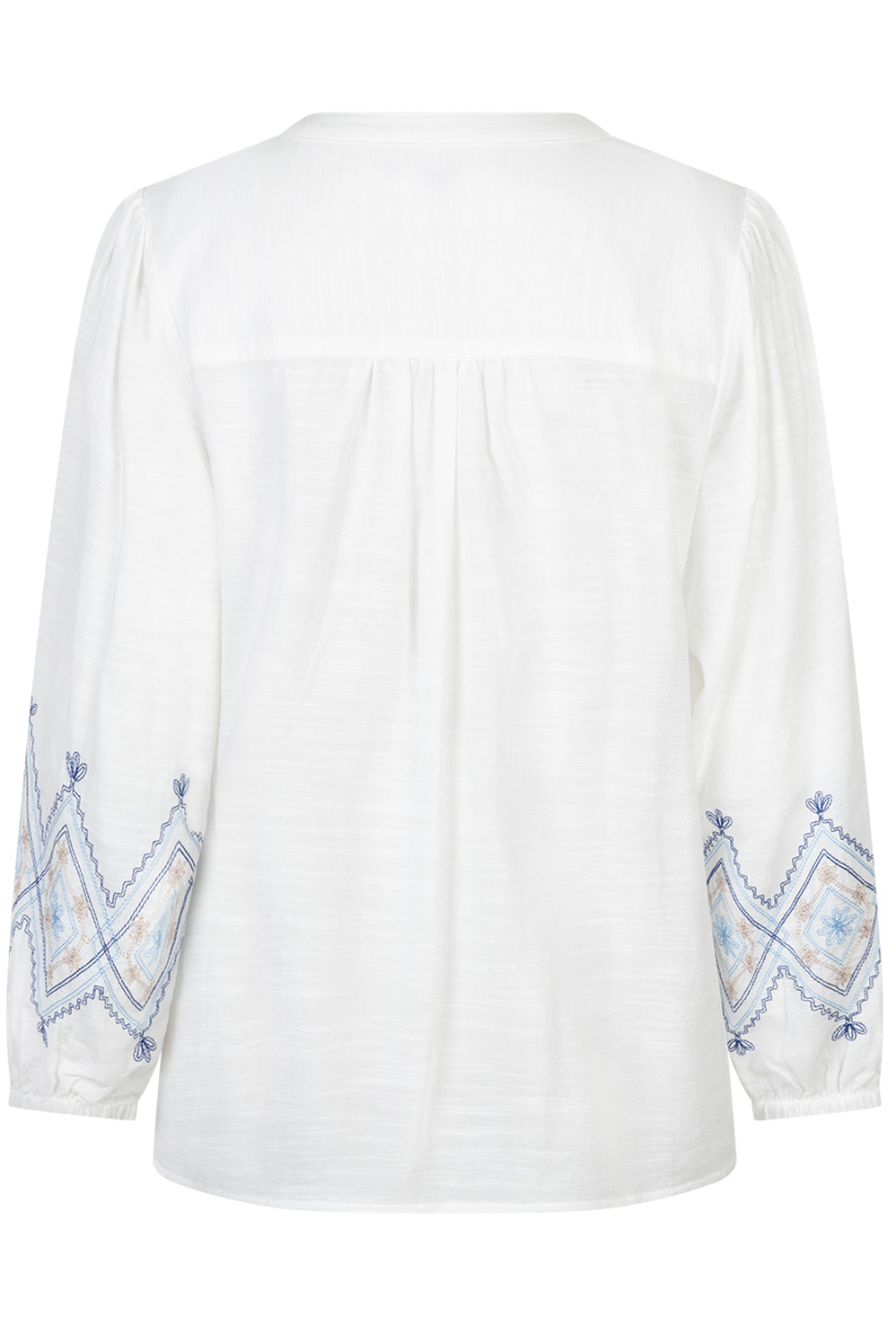 Blouse van Red Button in de kleur wit/blauw verkrijgbaar. De Blouse & Embroidery is een blouse met een borduursel op de mouwen en een V-hals. De blouse heeft lange subtiele ballon mouwen en een regular fit. Materiaal:42%viscose 58%cotton