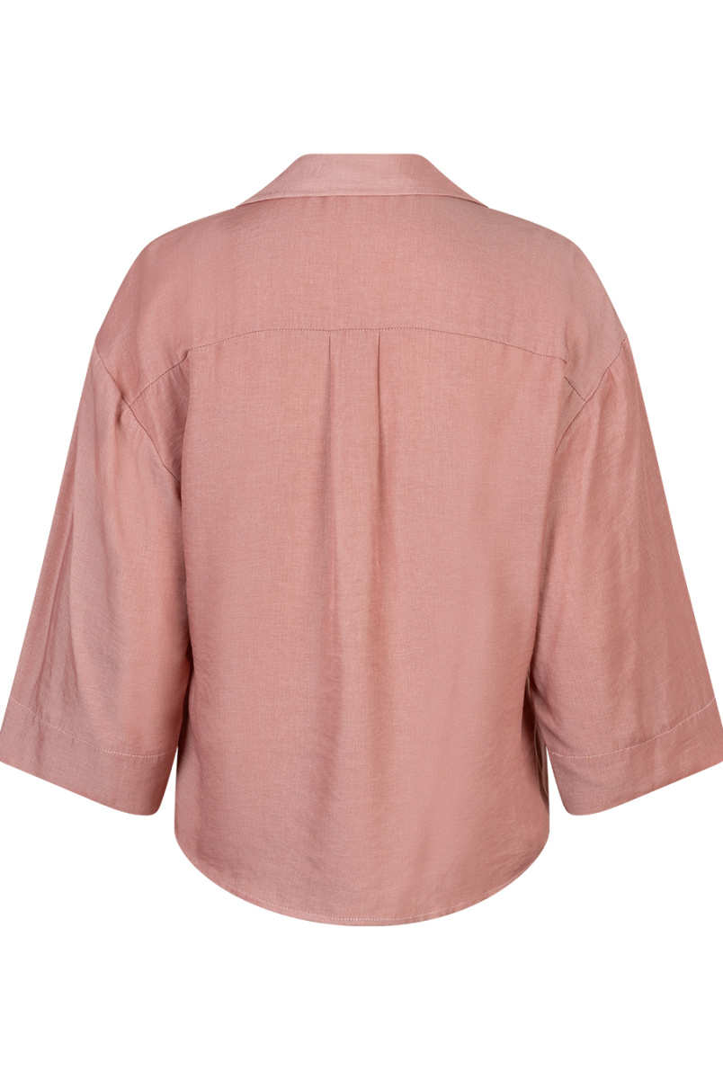 Blouse van Red Button in de kleur oud roze en zand verkrijgbaar. De Amalia Blouse Shine is een blouse van een glanzende soepele kwaliteit met een regular fit. De blouse heeft een knoopsluiting aan de voorkant, driekwart mouwen. Materiaal:50%viscose 50%polyester