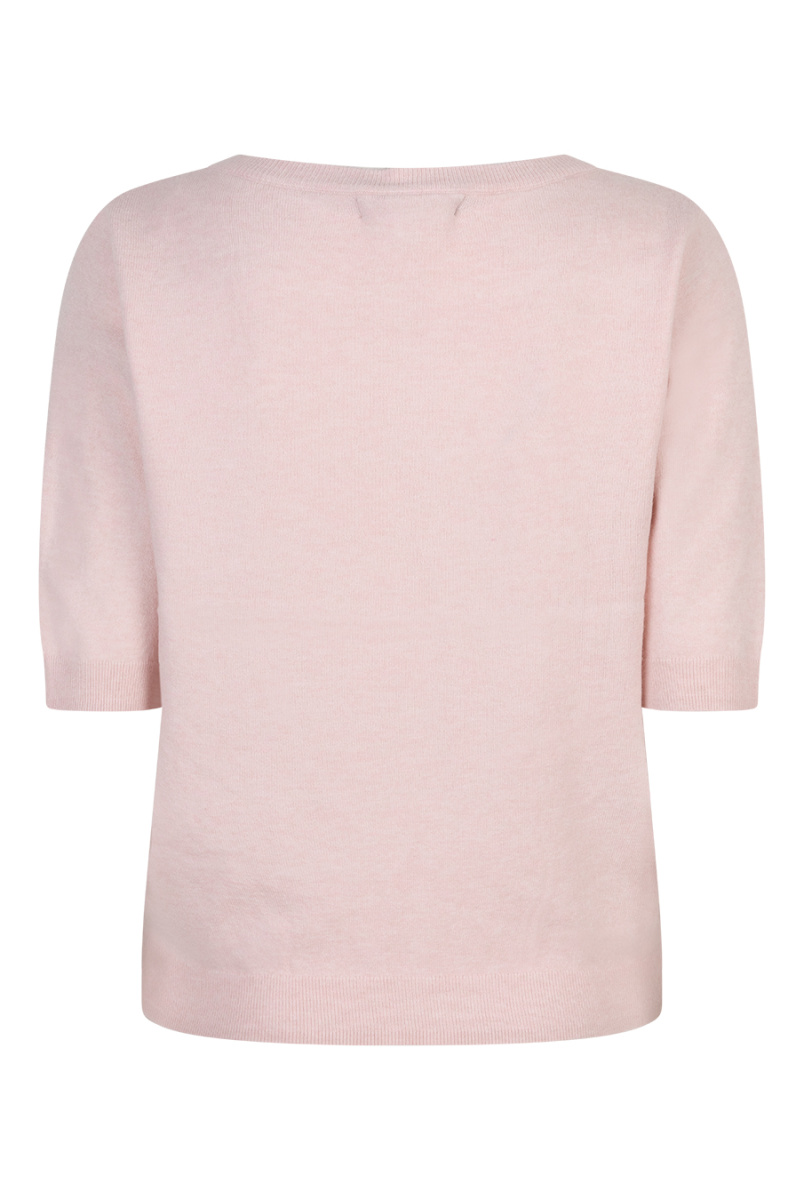 Truitje van Red Button in de kleur licht roze en pearl verkrijgbaar. De Sweet Ribbon is een gebreide top met korte mouwen en een regular fit. De top heeft een borduursel op het voorpand en een ronde hals.