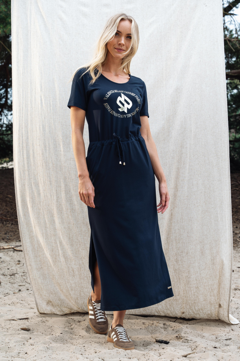 Jurk van Sophia Perla in de kleur donkerblauw en zand verkrijgbaar. Materiaal:95% Viscose 5% Elastane