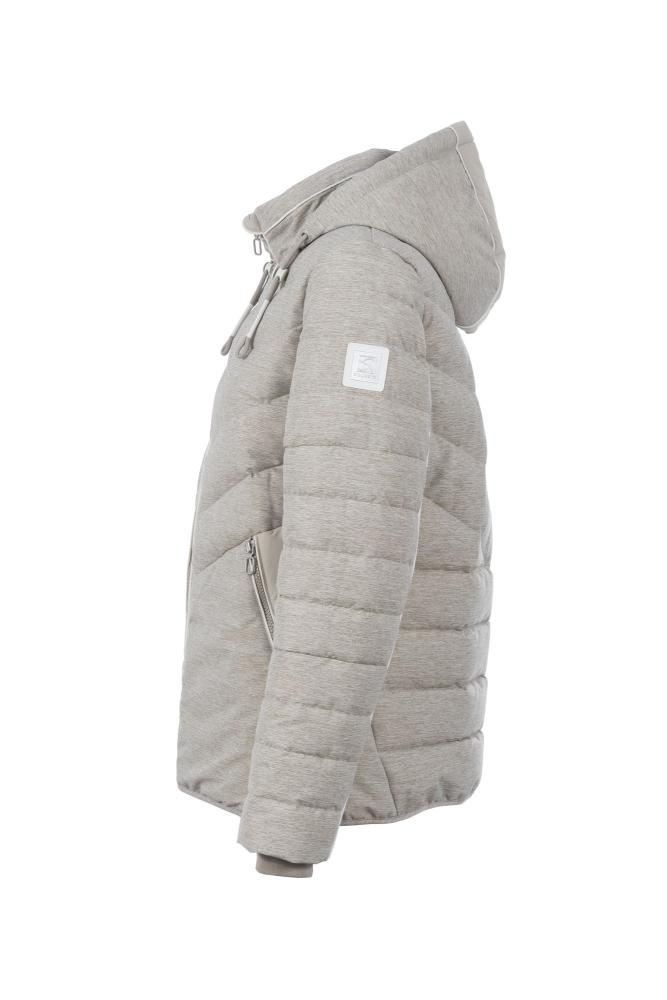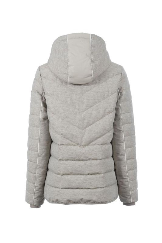 Jas van Soquesto in de kleur zand verkrijgbaar. Kort jasje met een melange-look. De bijzondere quilts en stoffen inzetstukken aan de zijkanten en capuchon geven het jasje een eigen touch. Licht contrasterende biezen maken de look compleet.