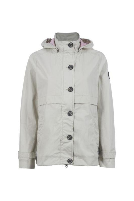 Jas van Soquesto in de kleur kit verkrijgbaar. Een lichtgewicht tussenjas met een rechte snit. De jas maakt indruk met subtiele details zoals knopen en het kleurcontrast in de capuchon en aan de binnenkant.