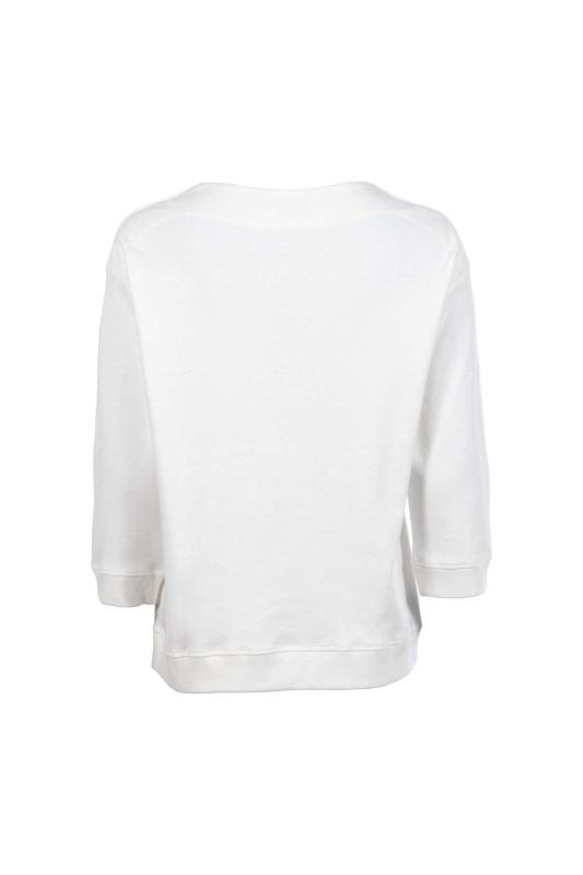 Deze comfortabele sweater maakt indruk met zijn charmante details. De moderne print op de voorkant zorgt voor een frisse look, terwijl de kleine knoopjes op de schouders speelse accenten toevoegen. De sweater heeft 3/4 mouwen en verlaagde schouders voor een relaxte pasvorm.