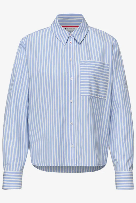 Blouse van Street One in de kleur blauw. Katoenen blouse Vrijblijvend Overhemdkraag Lange mouw Modern en veelzijdig Materiaal:100% katoen