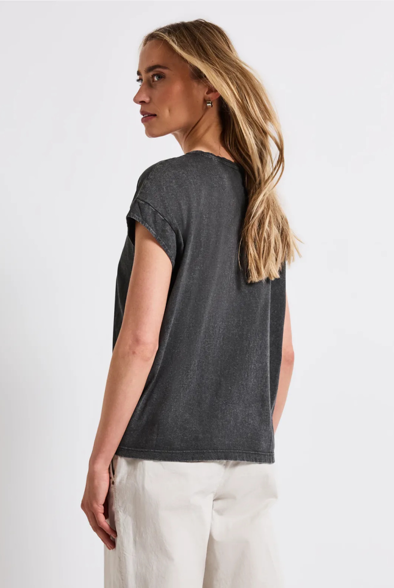 Dit Street One Shirt voor dames heeft een trendy verwassen look en artwork met decoratieve steentjes. De ronde halslijn en afgezakte schouders zorgen voor een ontspannen pasvorm. Het zuivere katoen voelt aangenaam zacht aan tegen de huid.