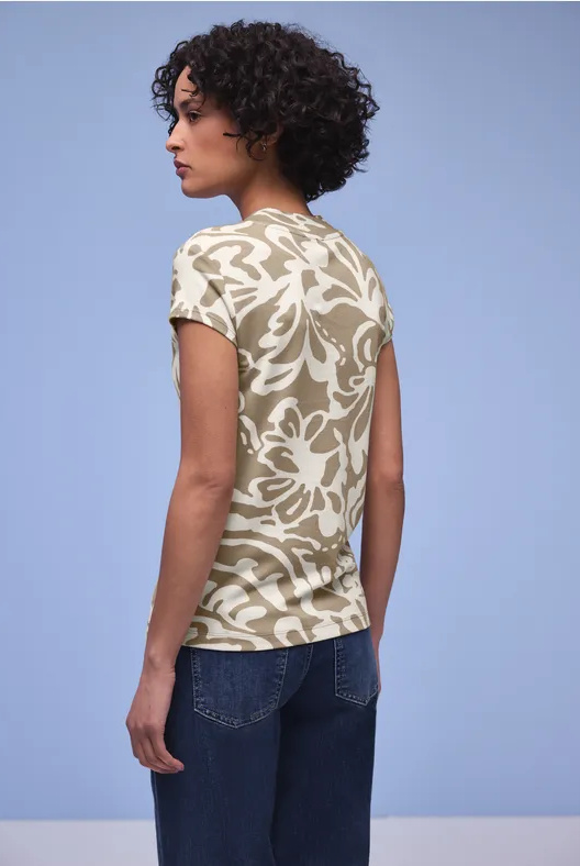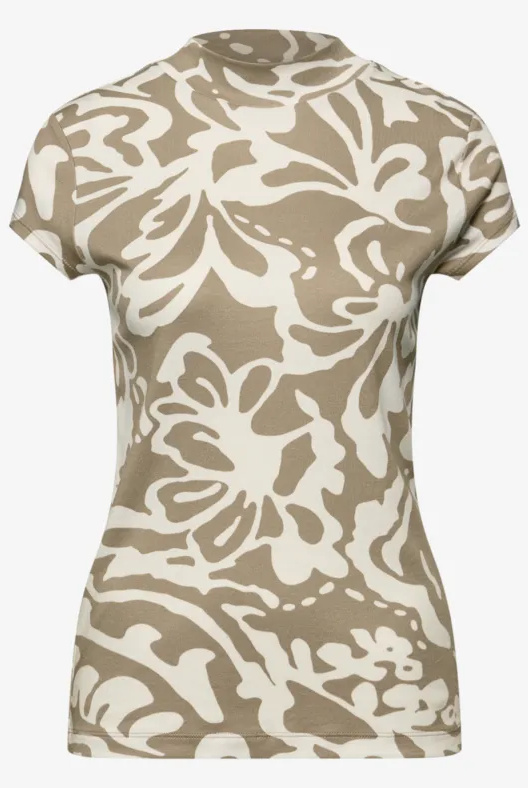 Shirt van Street One in de kleur beige verkrijgbaar. Jersey shirt Vrijblijvend Col Korte mouw Figuurflatterend Materiaal:50% katoen 50% modal