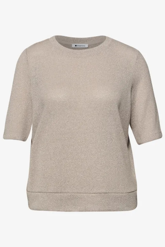Shirt van Street One in de kleur zand verkrijgbaar. Materiaal:53% Polyester 46% Viscose 1% Gemetalliseerde vezels