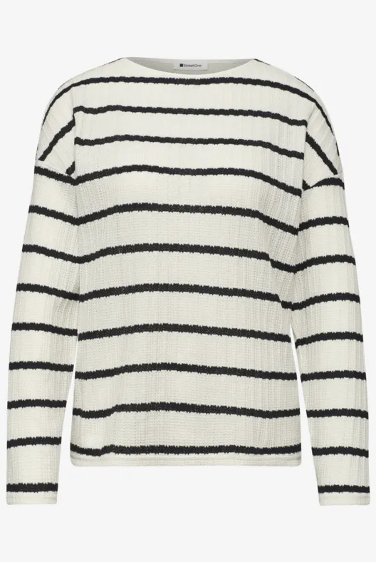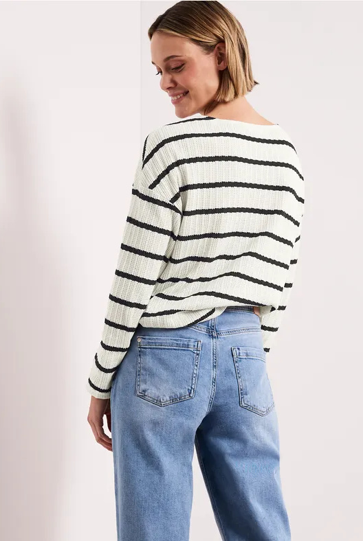 Trui van Street One in de kleur donkerblauw gestreept. Shirt met gebreide look Vrijblijvend Boothals Lange mouw Comfortabel Materiaal:60% polyester 40% katoen